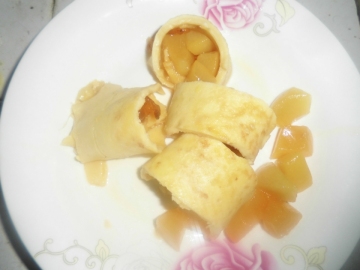 第一种:美食美味的鸡蛋拔丝黄桃卷做法