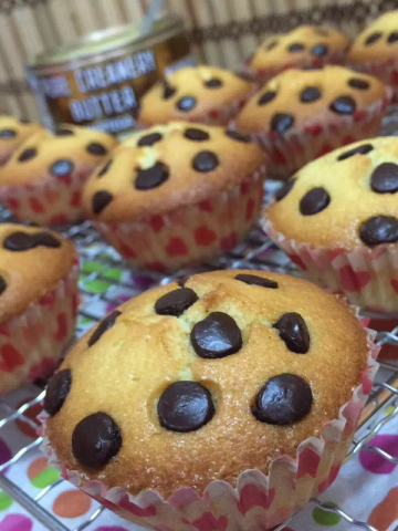 牛油120g,幼糖80g,蛋2粒(打散),牛奶50g,自发粉140,巧克力粒适量