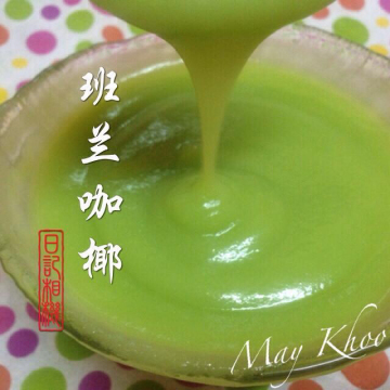1、浓椰浆,班兰汁,糖,鸡蛋全部混合拌匀,过滤;
