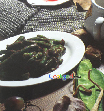 用荷兰豆替换芸豆,称酱爆荷兰豆。