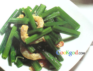2、炒锅上火烧热,加底油,用葱、姜末炝锅,下入海米煸炒片刻,烹绍酒,加入精盐、味精,添少许汤,下入芹菜段翻炒均匀,用水淀粉勾薄芡,淋香油,出锅装盘即可。