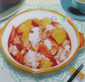第一种:家常菜菜谱菠萝柿子煲牛肉做法