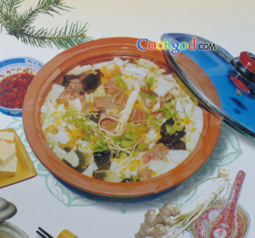 (4)下鱼肉炒匀后,全部倒入高汤中加上调味料熬煮即可。