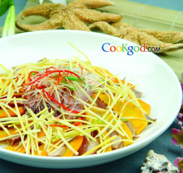 柚子皮100克,南瓜200克,腊肉180克。调料葱丝、姜丝、红椒丝各15克,盐10克,贺盛鸡粉20克,白糖5克,胡椒粉3克,葱油10克,色拉油1千克,姜汁酒5克。