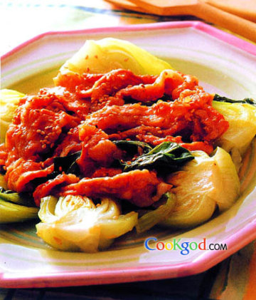 第一种:家常菜菜谱焖蒸猪肉油菜做法