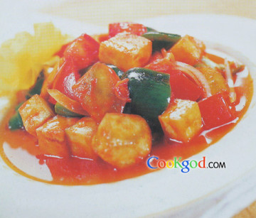 主料:茄子500克,青椒250克,番茄120克,洋葱50克,蒜瓣25克