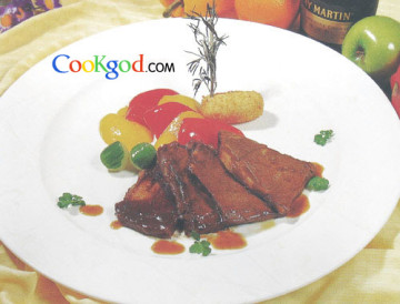 (2)南黄油将腌好的牛肉略煎,加入红酒和黄汁,再以小火煨至牛肉酥软。