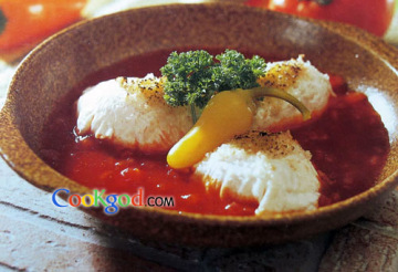 水500毫升,白醋3汤匙,鸡蛋6只,酱汁料,罐头番茄碎1/2罐,蒜茸1粒,橄榄油1汤匙,洋葱碎1汤匙,辣红椒粉1/4茶匙,红椒粉1/2茶匙,盐及胡椒粉少许