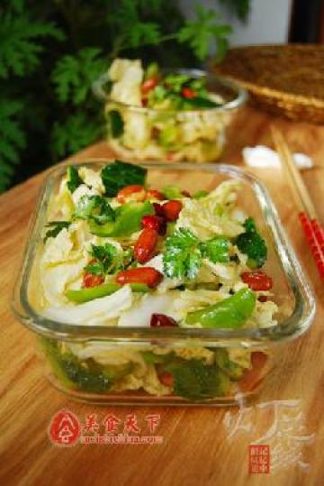 大白菜心、黄瓜、花生、绿尖椒、香菜、干红辣椒。