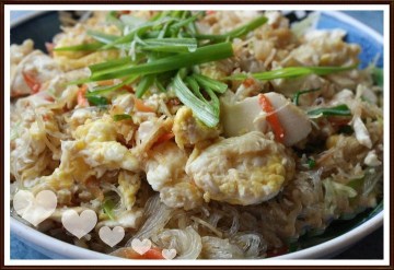 油=3 tbsp2粒鸡蛋1块水豆腐(稍为压烂)1tbsp小干贝,浸软 压成丝状50g冬粉,浸软调味料:1tbsp蚝油少许麻油和胡椒粉1/2条红萝卜,切丝1课青葱,切丝