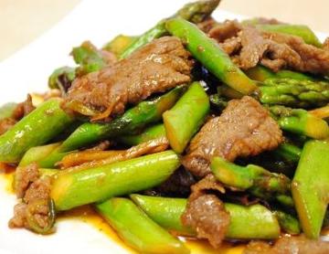 第一种:家常菜菜谱甜辣芦笋牛肉片做法