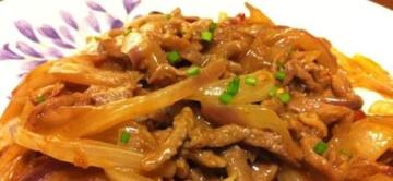 3. 黄油把洋葱炒软,倒入牛肉丝炒炒。