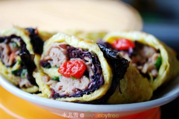 第一种:家常菜菜谱羊肉紫菜蛋卷做法