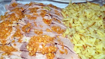 (3)要吃时沾五味酱食用,或者直接淋在肉片上均可。