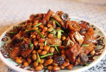 第一种:家常菜菜谱腊鸡烧黄豆做法
