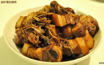 金针菜(黄花菜),五花肉,姜片,黄酒,冰糖,葱,生抽