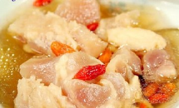 牛筋2条,当归4片,党参1条,北芪1大片,枸杞子1把,淮山8片,姜3片,米酒2茶匙,盐适量