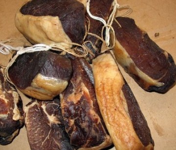3,泡好的肉晒一天后挂通风处阴干,大概要20天左右。