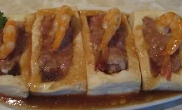 第五种:家常菜菜谱香煎虾茸豆腐盒做法
