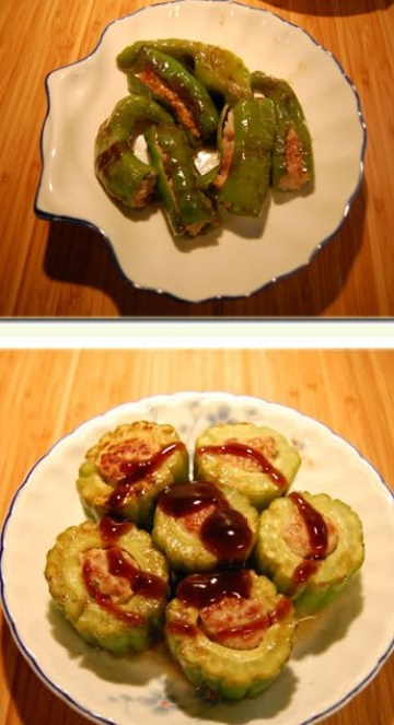 第一种:家常菜菜谱苦瓜 辣椒塞肉做法