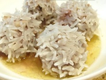 三、糯米滤好水,放在一碟里,用手将肉糜搓成象乒乓球状,将牛肉球在糯米上滚,让球能浑身沾上糯米;