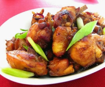 一、鸡腿切成几截,预先用生抽、少许白兰地和糖、油、胡椒面和油腌好,然后在锅里加油,鸡入锅炒干水,盛起备用;