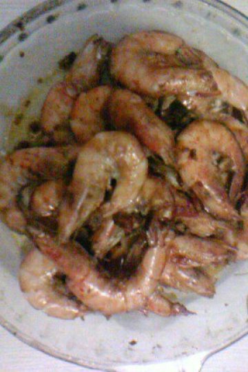 大虾一盘(我是18个左右),植物油,蒜末,姜,耗油,盐,老抽,糖少许。