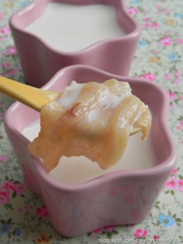 纯牛奶500ml,干花胶50克,冰糖适量,生姜(怕腥的可以加2片,不可多,否则抢味了)