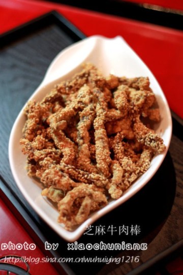 第一种:家常菜菜谱芝麻牛肉棒做法