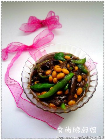 第一种:家常菜菜谱黄豆焖茄子做法
