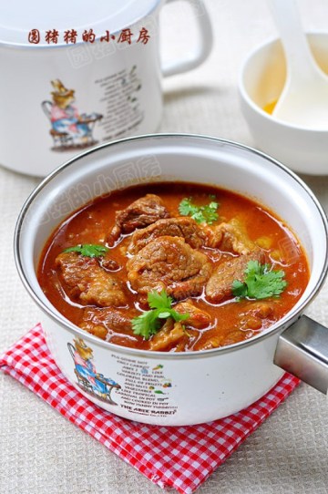 3.锅热后放油,倒入所有原料翻炒至番茄出大量的汁水,将除盐以外的所有调料倒入炒匀,倒入一小碗热 水至汤汁没过锅内原料,盖上锅盖,大火煮开后改中火炖约30-40分钟肉酥后,加入盐调味即可。