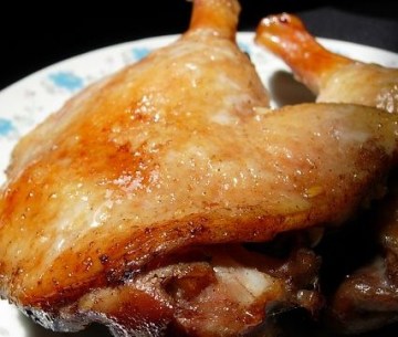 鸭腿3个,蒜蓉、盐(半茶匙),五香粉,生姜几片,15毫升蜂蜜,2汤匙醋