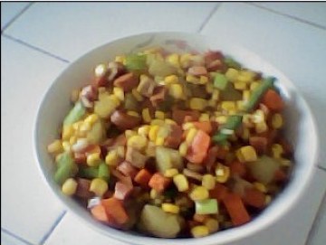 第二种:家常菜菜谱肉丁蔬菜玉米粒做法