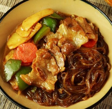 主料:土豆,青椒,胡萝卜,粉条,五花肉