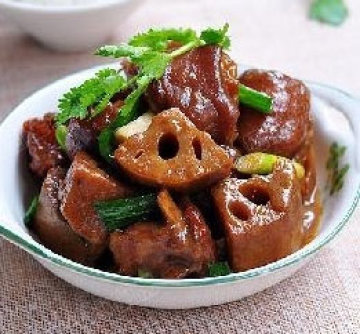 第一种:家常菜菜谱猪手焖莲藕做法