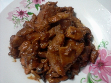 2、烧开油镬,放入蒜茸和葱头泥爆香,加入餣好的肉片用大火快炒,并加入桂皮八角,待肉变焦加入600ml水大约煮十分钟,然后加入之前炸好的芋头和调味料,转小火焖至汤汁变稠,芋头变软。