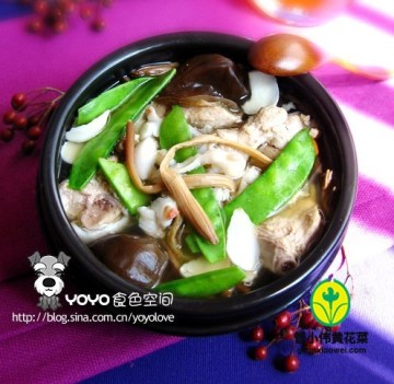 2、加入百合、荷兰豆旺火继续煲15分钟;
