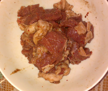 瘦肉片,李锦记蜜汁烤肉酱,黑胡椒,鸡精,盐