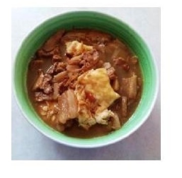 5、大火煮滚一会, 等汤汁稍微收乾了,熄火, 再拌入一些麻油,就可以盛起开动囖。