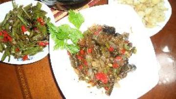 枸杞山药蛋煲瘦肉、孜然风味干锅排骨、136【蒜泥白肉】、猪肉炖豆角(粉条)、140【家常红烧鲳鱼】
