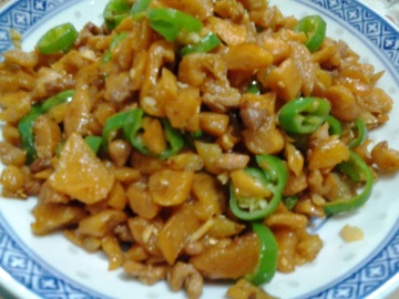 甜菜脯本身有味道,买回来只要冲洗一下就好,不须要浸泡,炒的时候因为有虾米和猪肉提升此菜的鲜味,所以炒的时候不需要太多调味,盐最好记得在炒青椒时加,要是已经放入菜脯就不要再放盐,不是的话就会太咸咯(盛出前可试味,要是淡可放少许生抽)