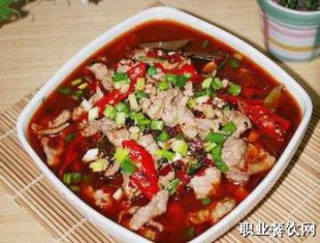 顾名思义水煮肉片一般都是水煮的,而此菜根据水煮鱼改良用油浸熟,口味更好。