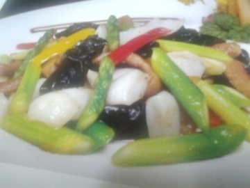 2、百合、芦笋、黑木耳飞水备用。