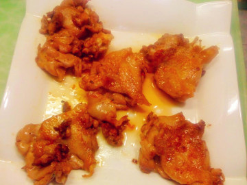 16.要吃的当天早晨,取出来,用少许油煎一下,因为鸡肉很容易熟的,所以很快就会好了