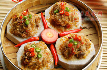 第一种:慈菇贝类蒸肉饼