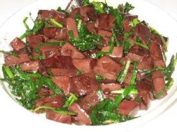 第一种:家常菜菜谱长韭菜烧猪血做法