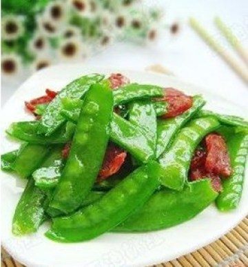 第一种:家常菜菜谱香肠烧荷兰豆做法