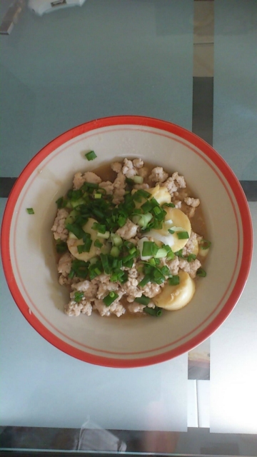 日本豆腐 2 根,青葱 2 根,蒜头数10粒,猪肉 5块钱,生抽,盐,胡椒粉,蚝油