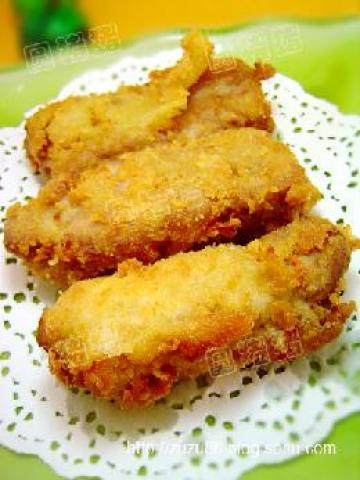4.锅内热油,油温高至放一只竹筷子进去,筷子上有冒气泡即可放入排骨了.中火炸至金黄色后,开大火炸1分钟即可捞出了.
