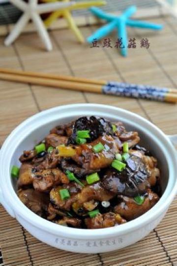 鸡肉,花菇,干豆豉,姜丝,葱段,蚝油